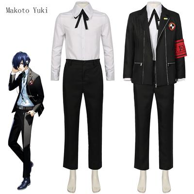 Hra P3 Makoto Yuki Cosplay Kostým Paruka Gekkoukan Středoškolská Uniforma Výšivka Černý oblek Kalhoty Košile Denní nošení Dárky