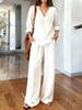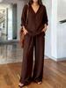 New Women's Casual V-Neck Pullover Long Sleeve Pants Set - Multi-Color Cotton