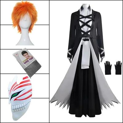 BLEACH Kurosaki Ichigo Cosplay Kostým Černý Anime Oblek Halloween Role Hrací Kabát Kimono Plný Oblek Muži Ženy Oblečení