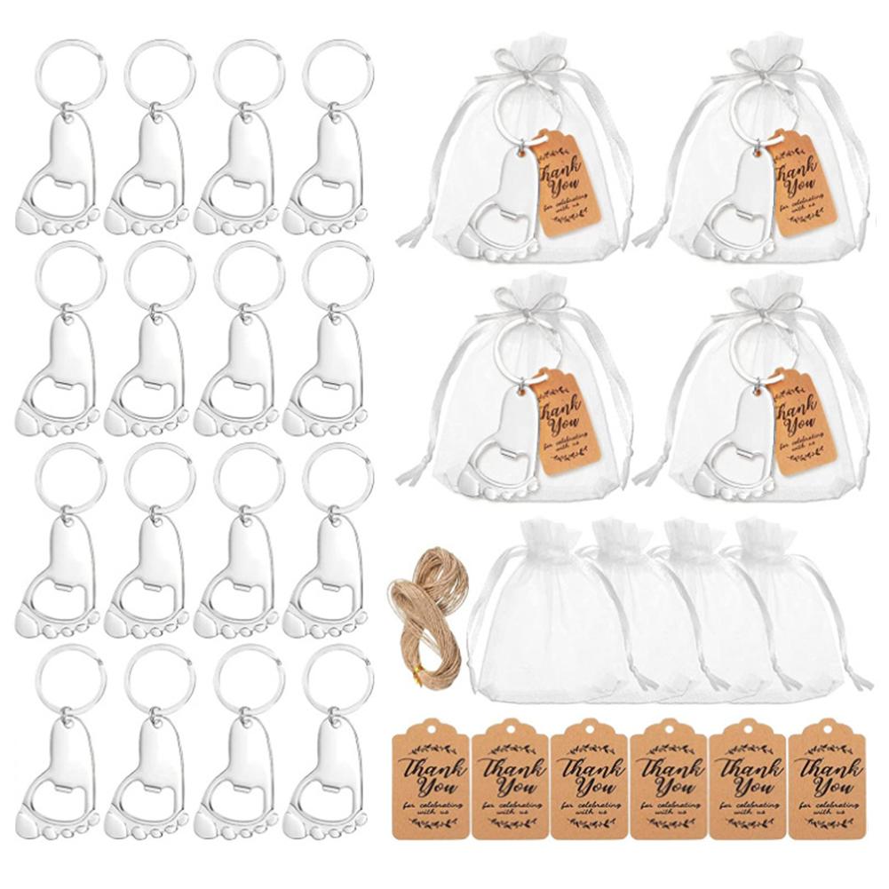 50pcs Footprint Bottle Opener Set With Organza Bags Tags Jute Twine Shower Favors For Guest