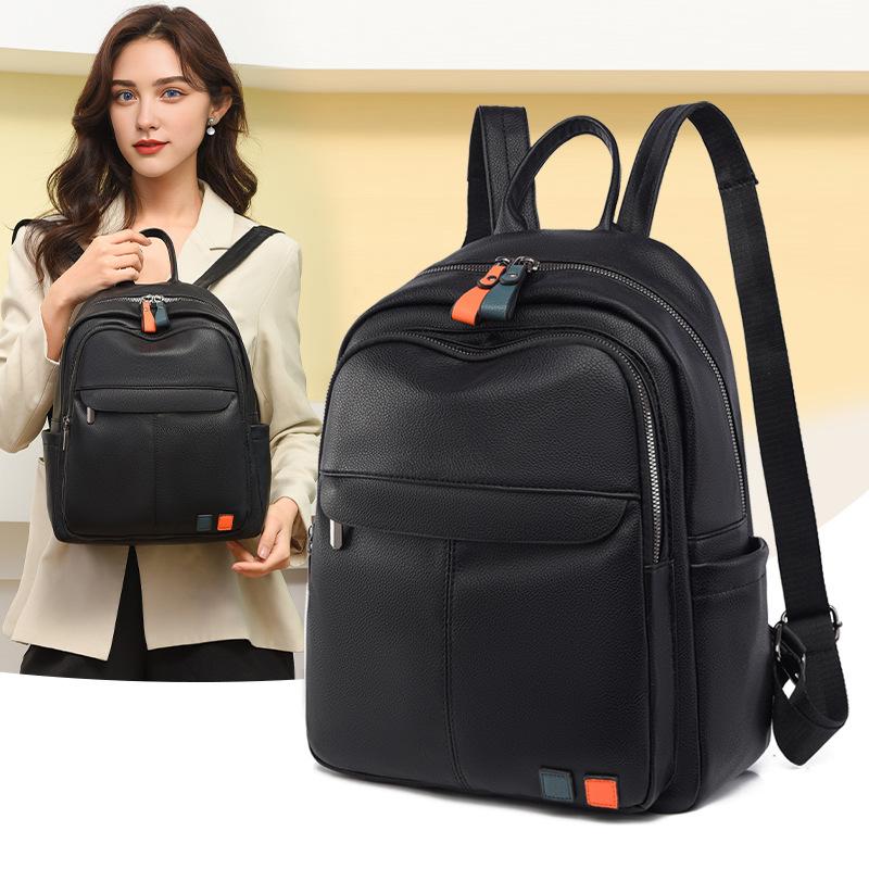 Korean version of fashionable commuter women's bag, simple work and class, versatile backpack, practical casual cover, tie rod travel backpack