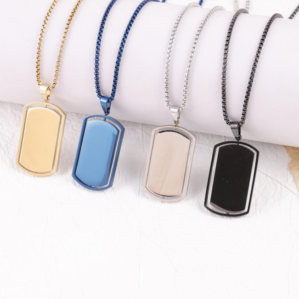 Men's Trendy Rotatable Tag Pendant Necklace in Stainless Steel