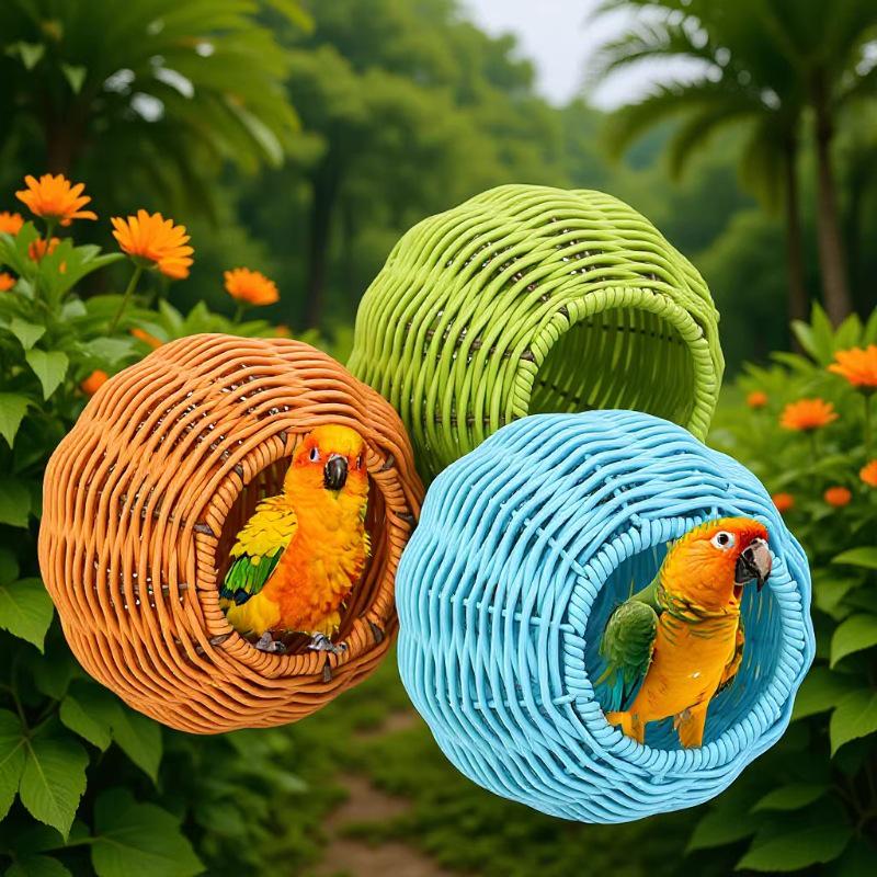 Hanging Rattan Bird & Squirrel Nest with Plastic Cage - Cozy Sleep Spot for Small Pets