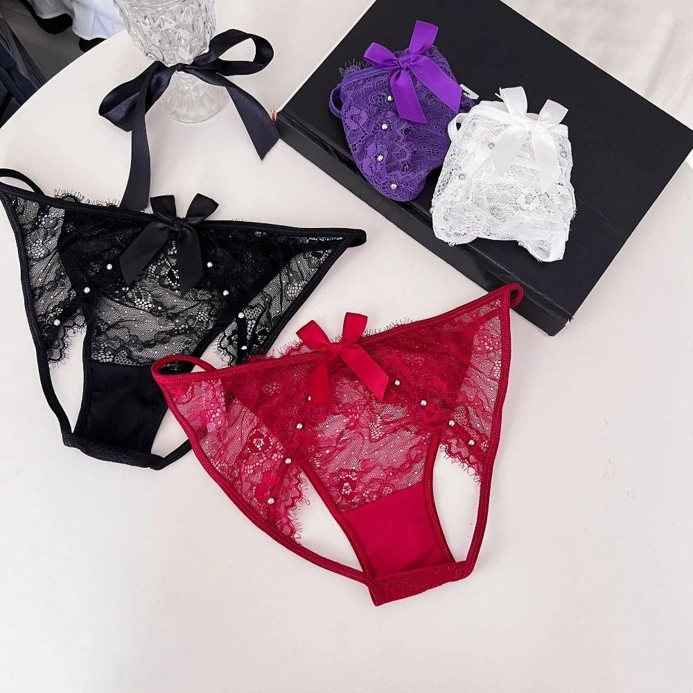 G-String Bowknot Lace Panties Flowers Big Bow Underpants Breathable Thong for Women Home