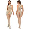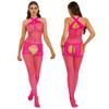 Womens Fishnet Crotchless Bodystocking See Through Cutout Cross Halter Neck Jumpsuit