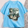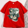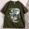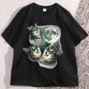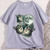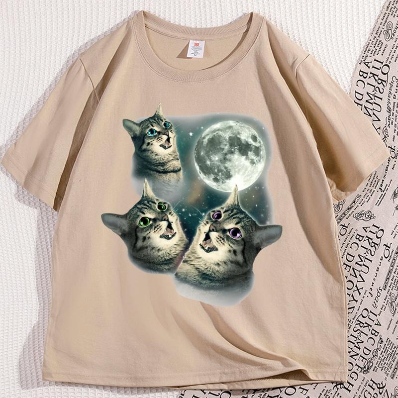 Three Cat Moon T Shirt Man Cotton Short Sleeve Funny Cat Parody Tshirt Wolf Moon Cat Cute Kitten Tshirt Male Clothes Tops