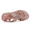 Women's Flat Rhinestone Sandals Bohemian Sandals Summer Non Slip Beach Elastic Low Heels Roman Sandals Sandalias