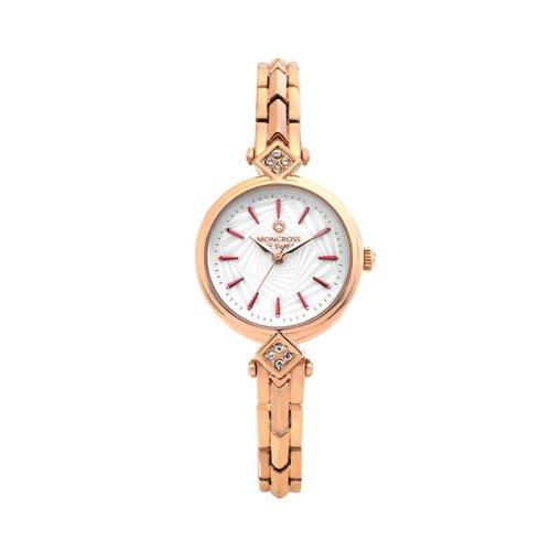 The MS8451F-RG boasts a captivating jewelry-inspired design, featuring a radiant metallic finish that catches the light beautifully. Its delicate 22mm case size is perfectly proportioned for a feminine wrist, offering a subtle yet impactful statement. The integration of watch and jewelry design creates a luxurious aesthetic that complements various styles.