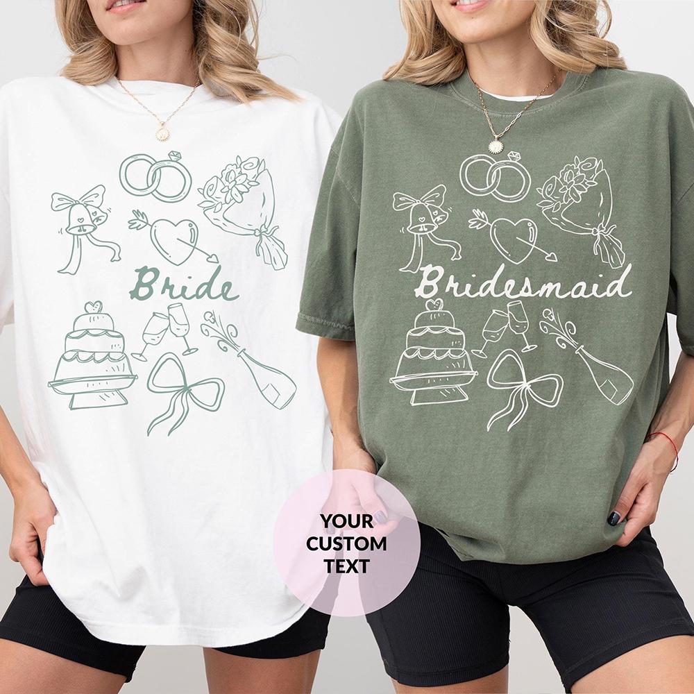 Bride Bridesmaid Shirt Custom Wedding Day Getting Ready Comfort Shirts Group Matching Tee Cotton Y2K Top Daily Trendy Streetwear