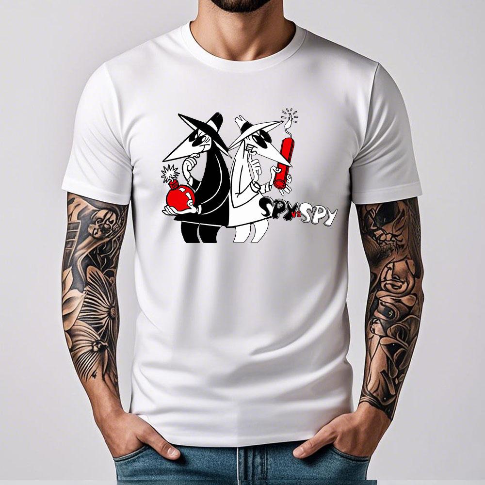 Mens Spy Vs Spy Graphic T Shirt Summer Cotton Crew Neck Retro 80s Cartoon Print Funny Humorous Vintage Style Fashion Tee Shirts