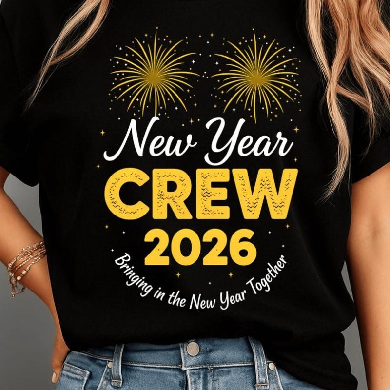 Ahoj 2026 Posádka šťastný Nový Rok Párty Sublimační Pánské Tričko Design Třpytivý Zlatý Text Digitální Stahování tištěné Tričko topy