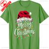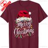 Red Santa Lights Design Christmas Cotton Tshirt for Men and Women Crew Neck Short Sleeve All Seasons Casual Fashion Soft Ideal