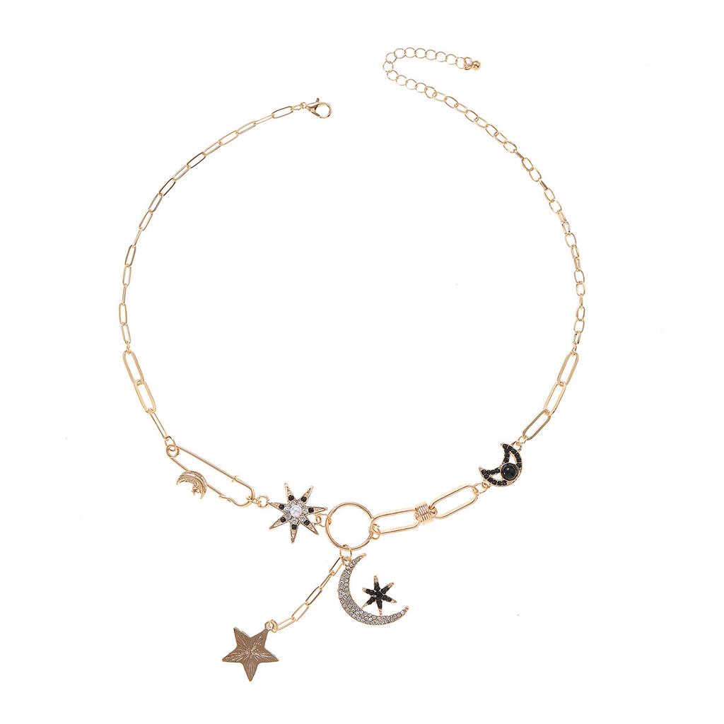 Necklace Accessories European and American Star Moon Pendant Women's Niche Light Luxury Advanced Sense Paper Clip Clavicle Chain