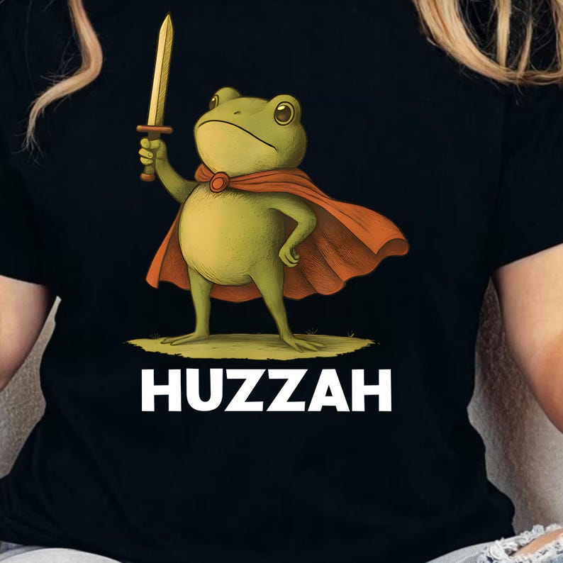 Women Shirts Popular Huzzah Frog with Sword Embroidered Medieval Funny Renaissance Faire Gift Casual Loose Tops Tee Shirt Short