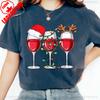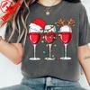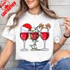 Christmas Party Shirt Women Wine Glasses TShirt Wine Lover Christmas Gift Tee Simple Casual Festival Clothing Cotton Tee Tops