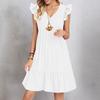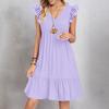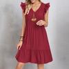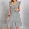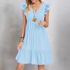 Womens Sleeve Casual V-Neck Pleated Dress Loose Linen Dresses