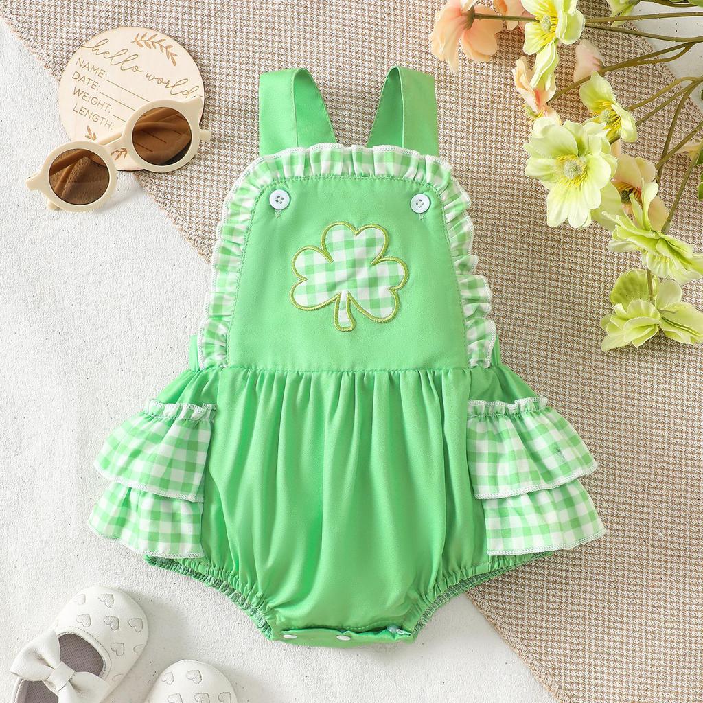 This adorable romper is perfect for your little one's summer adventures. Crafted from soft and breathable cotton, it keeps your child comfortable throughout the day. The unique design features cute lace suspenders and charming clover embroidery, adding a touch of whimsy to their outfit. Sleeveless for easy movement, it's an ideal choice for warm weather fun.