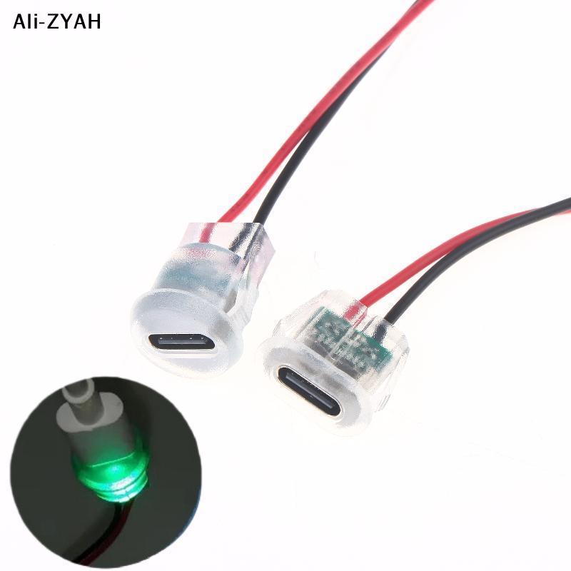 5/10Pcs Waterproof USB-C Power Port Female Connectors Transparent 2Pin USB Type-C With LED Lights Input Type Charging Socket