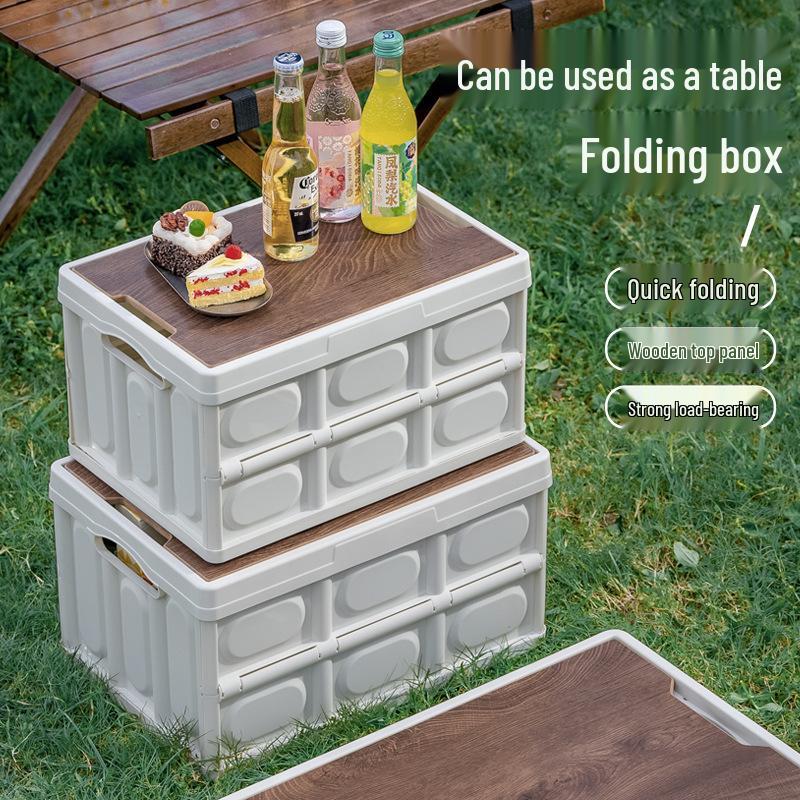 Collapsible Outdoor Camping Storage Box with Wooden Lid for Car Trunk Organization