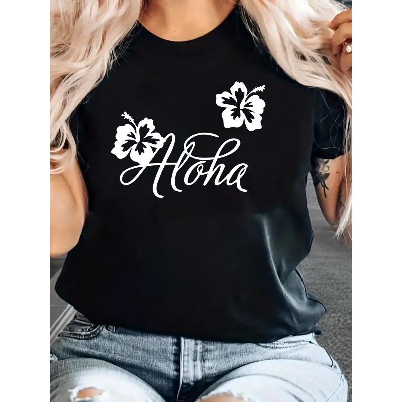 Women's Casual Floral Print Sports Tee Round Neck Short Sleeve Summer Vacation Top
