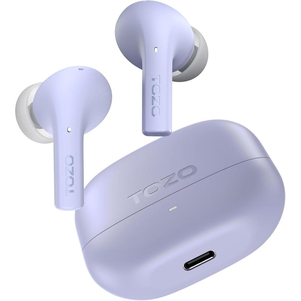 The TOZO E2 True Wireless Earbuds deliver excellent sound quality and stable Bluetooth 5.3 connectivity, providing sharp and clear sound. Designed with a 10mm dynamic driver, it offers a rich sound performance. A USB-C charging case is included, allowing approximately 8.5 hours of playback per charge and up to 30 hours with the case.