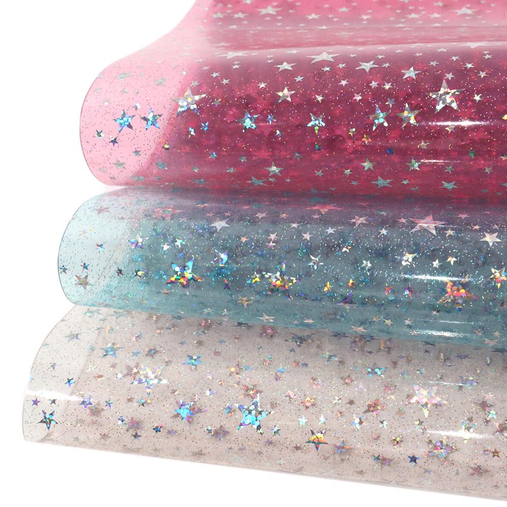 Iridescent Glitter Star Laser PVC Film - 0.5MM for Handbags, Backpacks, Shoes & Decorative Material