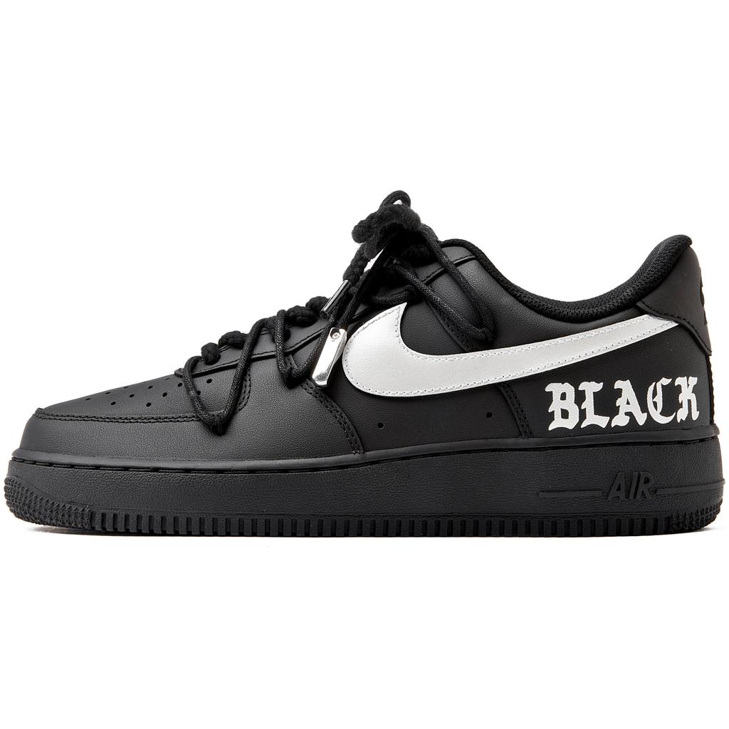 Nike Air Force 1 07 Coverage Slip Resistant Low top Skateboard Shoes Women's Black Silver DD8959-001(Team55-)
