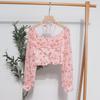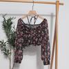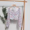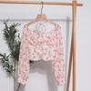 French Elegant Bohemian Floral Blouse Women Sweet Spring Casual Vacation Ruched Elastic Slim Tops Print Shirts