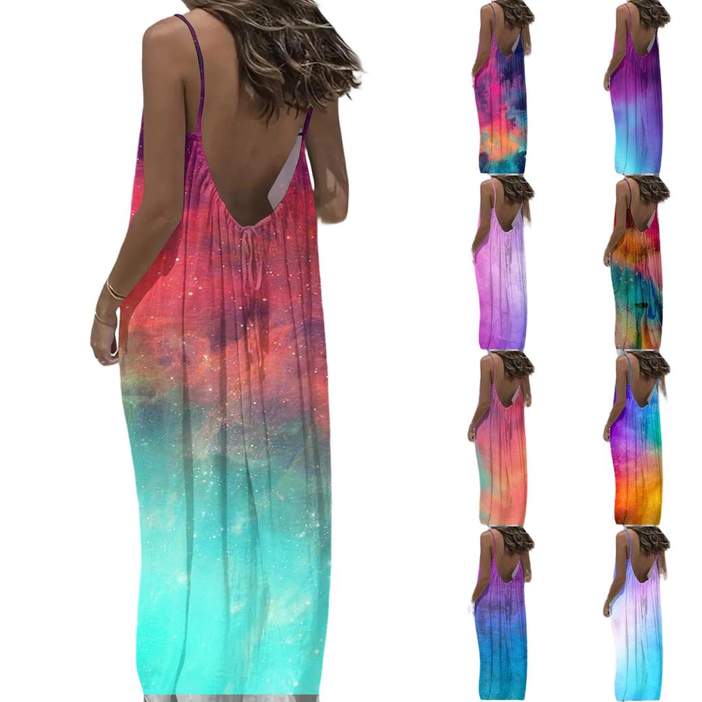 Dámské Módní Ležérní Volné Šaty s Květinovým Potiskem a Úzkými Ramínky Bez Zad
