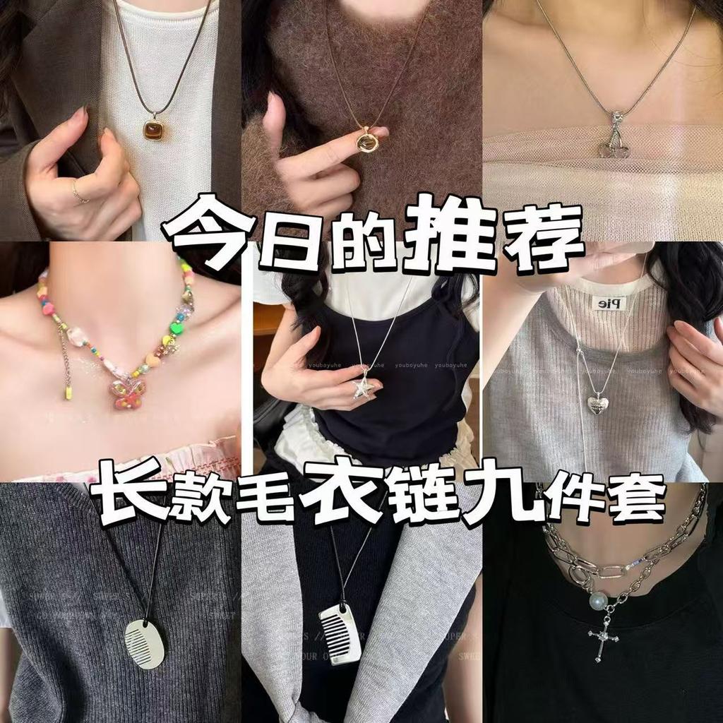 Japanese matte premium leaf pendant necklace women's premium long versatile accessories old retro sweater chain