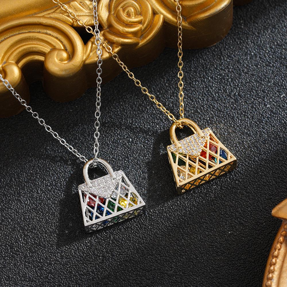 Colorful Gold-Plated Titanium Steel Necklace with 3D Seven-Color Stones - Trendy & Luxurious Women's Jewelry
