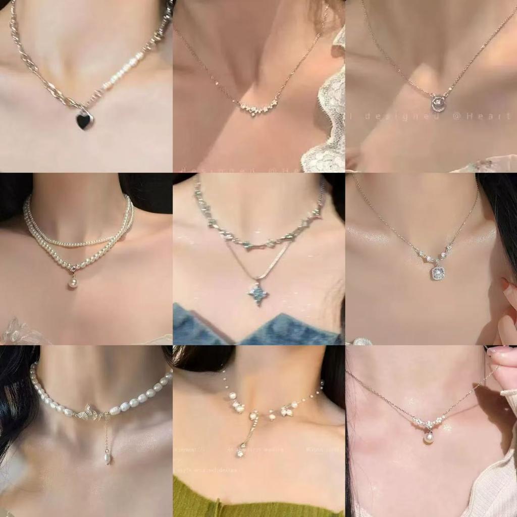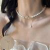 French pearl broken silver necklace women's summer light luxury niche high-end temperament neck chain new collarbone chain