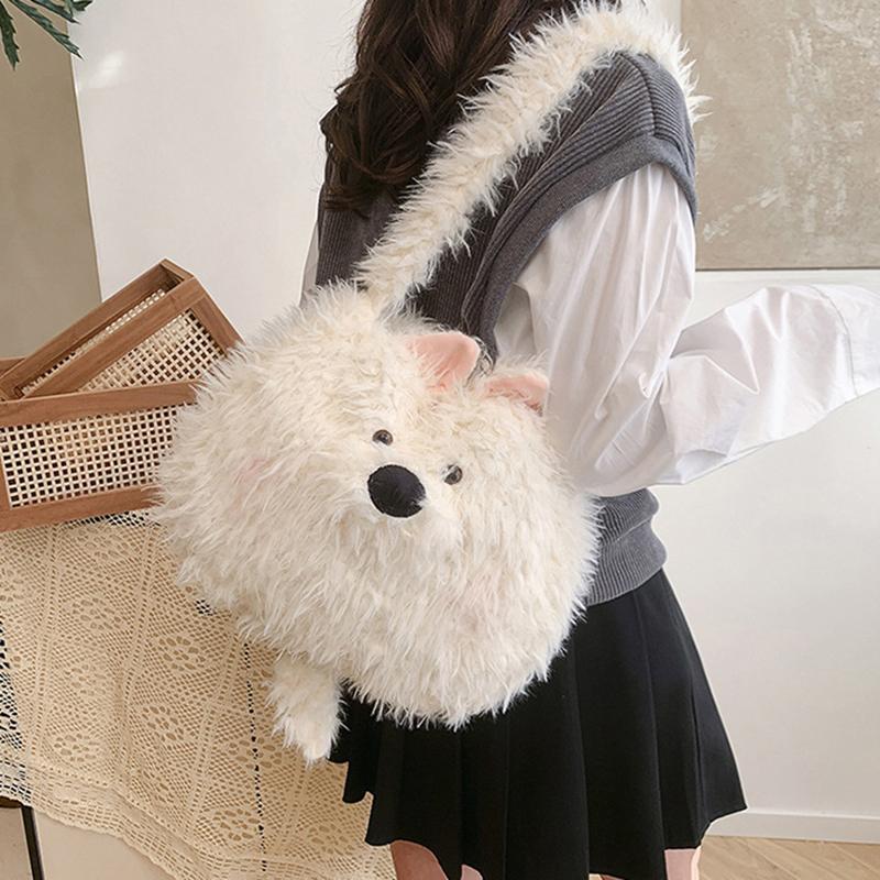 Cute Cartoon Dog Student Shoulder Bags For Women Girls Large Capacity Messenger Bag Simple Sweet Plush Female Handbags Gifts