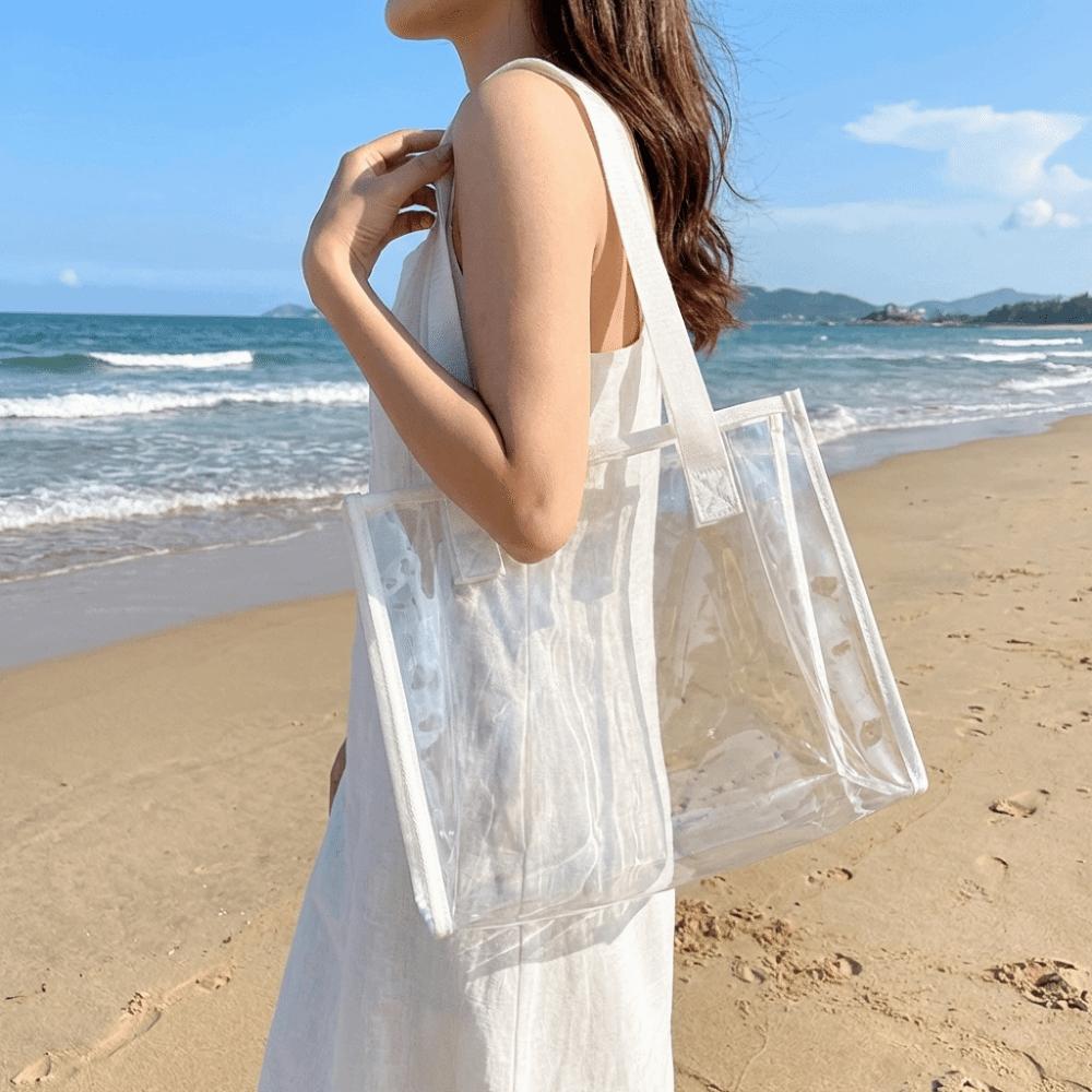 Large Capacity Waterproof Shoulder Bag Candy Color PVC Tote Bag Casual Transparent Handbag Sports