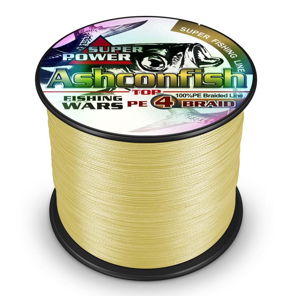 Ashconfish 4-strand fishing PE line X4 - Fishing line, PE, White, Yellow, Multicolor, Ultra-strong, High sensitivity, Abrasion resistant, Low stretch