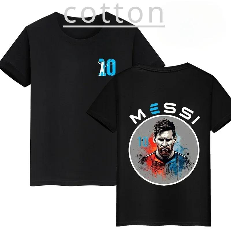 Lionel Messi #10 Double-Sided Print T-Shirt, Unisex Soccer Fan Streetwear Tee, 100% Cotton Casual Football Top