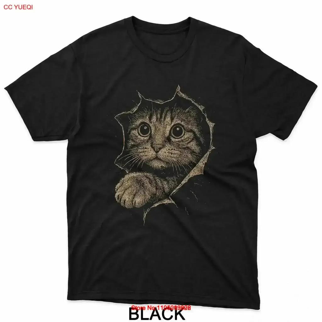Vintage Cute Cat Kitten Tearing Through T Shirt Washed Soft Versatile homme streetwear graphic Stretched Casual vintage Washed