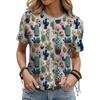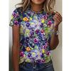 Women's Fashion T Shirt Oil Floral Pattern Fashion Short Sleeve Round Neck Short Sleeve T Shirt Top Casual Short Sleeve T Shirt