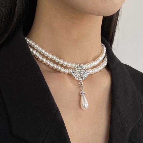 1 Set Faux Pearl Rhinestone Jewelry Women Teardrop Pendant Necklace And Earrings Elegant Beaded Necklace Jewelry for Engagement Wedding Cocktail Party