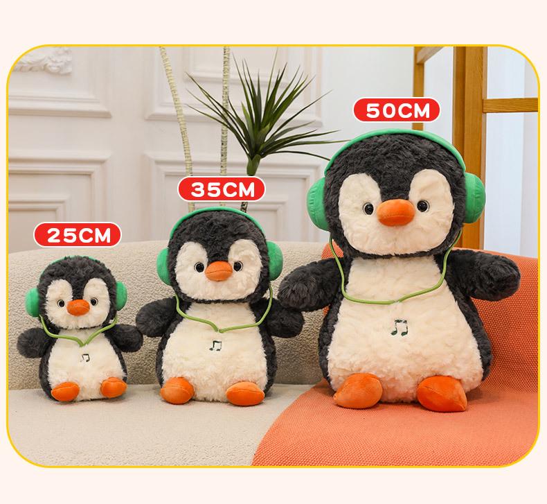 Chubby Penguin Plush Toy with Fun Headphones - Cute Cartoon Doll Gift for Girls