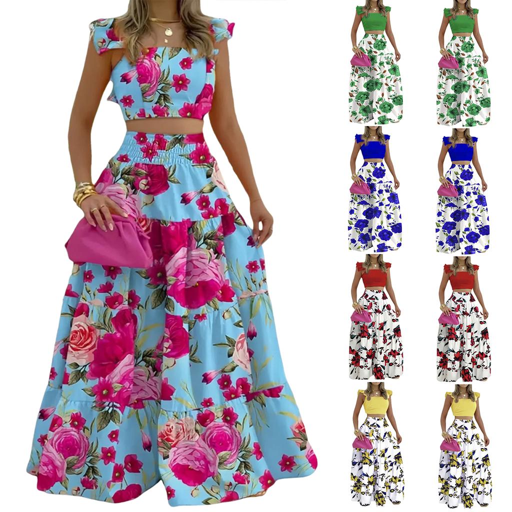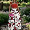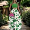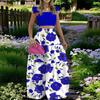 Women's Fashionable Casual Floral Print Elegant And Mid-Waist Strapless Wide-Skirt Two-Piece Dress Set