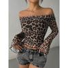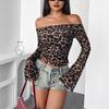 New Spring Women's Sexy One-shoulder Long-sleeved T-shirt Leopard Print Off-the-shoulder Top