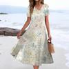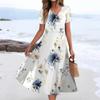 Women's Summer Casual Fashion Print Pocket Short Sleeve V-Neck Swing Dress