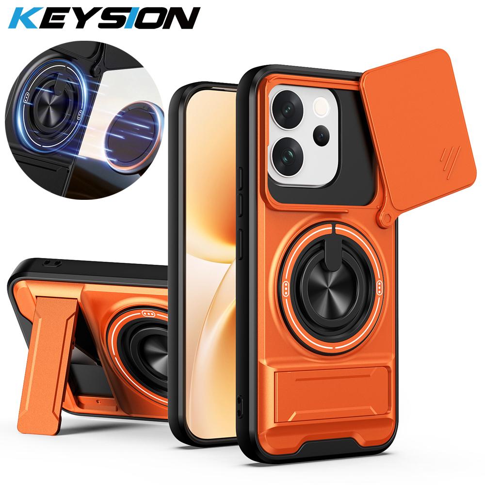 KEYSION Magnetic Phone Case for VIVO V70 5G Slide Camera Protection Upright Kickstand Ring Shockproof Back Cover for OPPO V70