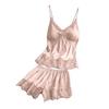 This women's two-piece pajamas set offers a perfect blend of comfort and style. Crafted from soft polyester fiber, it ensures a cozy and breathable wearing experience. The set includes a simple yet elegant top and matching trousers, designed with a casual and classic look that suits any woman who prefers understated fashion.