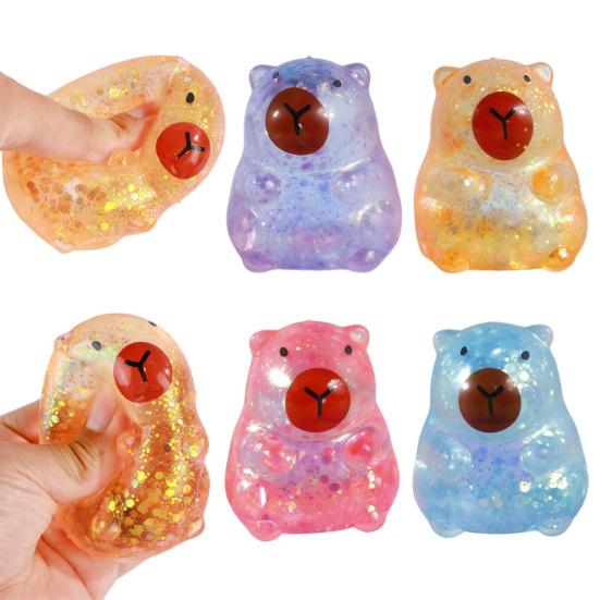 Vyrobeno z vysoce kvalitního materiálu TPR, nabízí měkkou, hladkou texturu s pomalým odskokem a postupně se vrací do původního tvaru po stlačení.. Tento třpytivý design kapybary s flitry kombinuje hravé kouzlo s realistickou gumovou texturou, takže je zábavný a vizuálně přitažlivý..