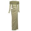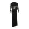 European & American Women's One-Shoulder Mesh Patchwork Evening Gown
