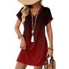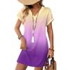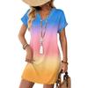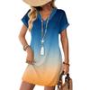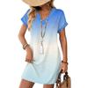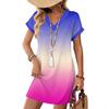 Women's Fashion Gradient Print V-Neck Short Sleeve Pocket Casual Pullover Dress