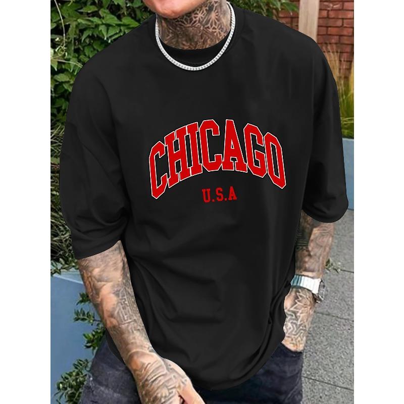 European Size Men'S Red Chicago Graphic Tee - Stylish Chicago Design Short Sleeve T-Shirt for Casual Attire, Lightweight & Comfortable Fabric