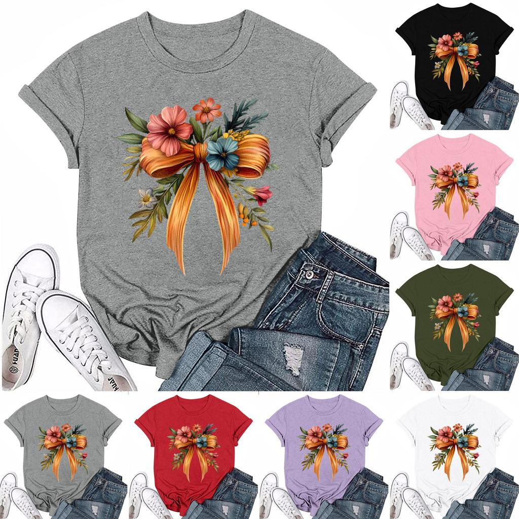 Dámská módní ležérní tištěná tričková halenka s kulatým výstřihem a krátkým rukávem Tričková halenka Halenka